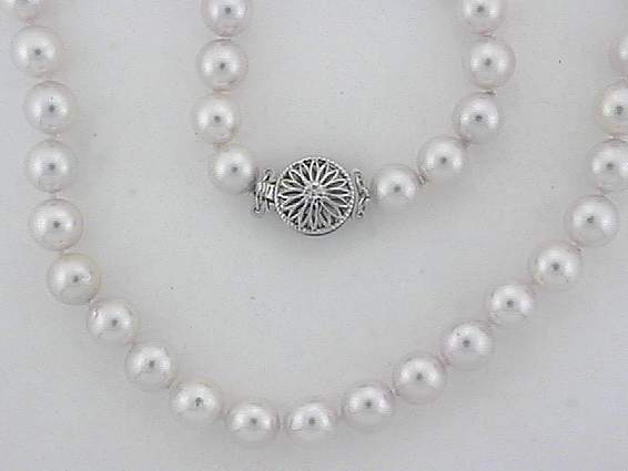 17" INCHES CULTURED PEARL NECKLACE WITH 8.50MM WITH 14K WHITE GOLD LUCK.
