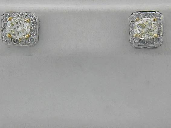 14K WHITE GOLD EARRING WITH .63CT ROUND SHAPE DIAMONDS SET IN PAVE SETTING AND WITH A CENTER OF (2PC) 2.14CT ROUND SHAPE DIAMOND SET IN PRONGS SETTING.