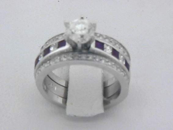 THREE (3)PCS. ENGAGEMENT SET HANDMADE 14K WHITE GOLD WITH A CENTER STONE OF .87CT ROUND BRILLIANT DIAMOND, EGL US#84904210D, MEAS.5.76 X 5.61 X 3.95MM, S12 H IN COLOR SET IN PRONGS SETTING AND WITH TOTAL OF 1.10CT ON THE ROUND AND PRINCESSS-CUT AND RUBY