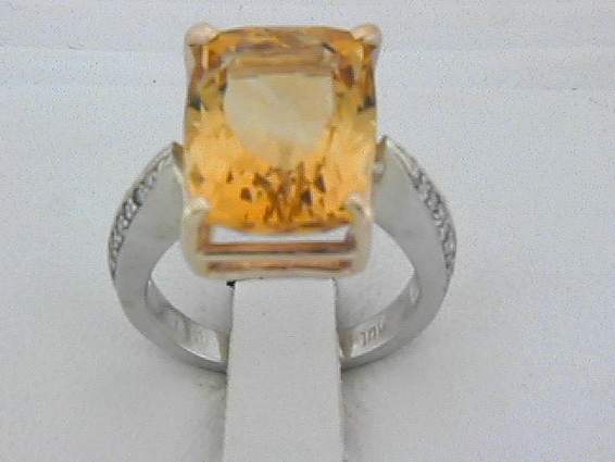 14K WHITE GOLD RING WITH .35CT ROUND SHAPE DIAMOND SET IN PAVE SETTING, CENTER OF 11CT RADIANT CUT CITRINE SET IN FOUR PRONGS SETTING.