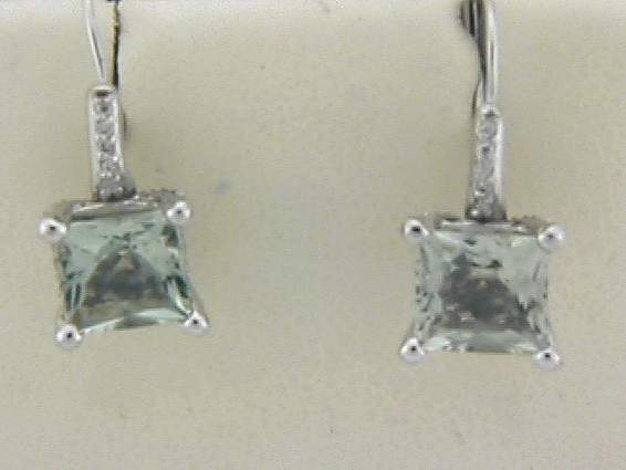 14K WHITE GOLD EARRING WITH .30CT ROUND SHAPE DIAMOND SET IN PAVE SETTING. CENTER OF 2.40CT PRINCESS CUT GREEN GARNET SET IN FOUR PRONGS SETTING.
