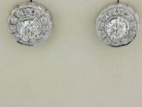 14K WHITE GOLD EARRING WITH TOTAL OF 1.55CT ROUND SHAPE DIAMOND SET IN PAVE AND PRONGS SETTING.