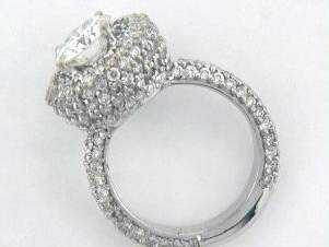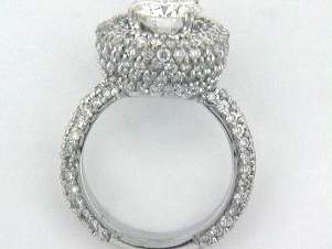 14K WHITE GOLD RING WITH 2.50CT ROUND SHAPE DIAMOND SET IN PAVE SETTING, CENTER OF 1.65CT ROUND SHAPE DIAMOND SET IN PRONGS SETTING. TOTAL OF 4.15CT DIAMONDS.