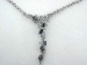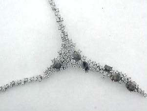14K WHITE GOLD NECKLACE WITH TOTAL OF 5.5CT ROUND SHAPE WHITE DIAMOND, AND 5.60CT OVAL AND PEAR SHAPE CHAMPAGNE COLOR DIAMOND SET IN PRONGS SETTING.