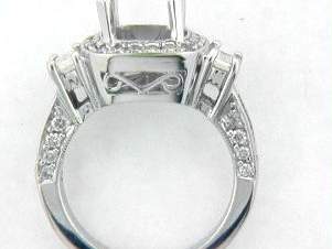 14K WHITE GOLD RING WITH .50CT ROUND SHAPE DIAMOND SET IN PAVE SETTING, AND 1CT EMERALD CUT DIAMOND SET IN CHANNEL AND PRONGS SETTING.