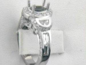 14K WHITE GOLD RING WITH .85CT ROUND SHAPE DIAMOND SET IN PAVE SETTING, .70CT BAGUETTE DIAMOND SET IN CHANNEL SETTING, SIDE OF .30CT MOON SHAPE DIAMOND SET IN BEZEL SETTING.
