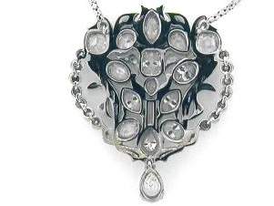 14K WHITE GOLD NECKLACE HANDMADE WITH 1.29CT PEAR SHAPE DIAMOND SET IN PRONGS SETTING AND 9.55CT MIXED FANCY SHAPE DIAMONDS SET IN BEZEL SETTING AND 2.50CT ROUND SHAPE DIAMONDS ON THE SIDES SET IN PAVE SETTING.