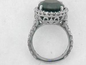 14K WHITE GOLD RING WITH 1.70CT WHITE ROUND SHAPE DIAMOND SET IN PAVE SETTING. CENTER OF 7.54CT ROUND SHAPE BLACK DIAMOND SET IN PRONGS SETTING.