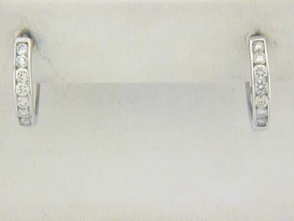 14K WHITE GOLD EARRING WITH A TOTAL OF .63 ROUND SHAPE DIAMONDS SET IN CHANNEL SETTING.
