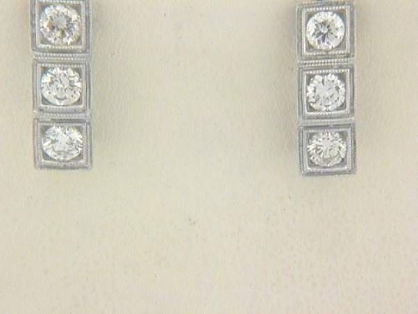 18K WHITE GOLD EARRING WITH A TOTAL OF 1.0CT ROUND SHAPE DIAMONDS SET IN BEZEL SETTING.