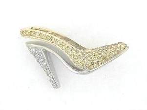 14K WHITE AND YELLOW SHOE PENDANT WITH A TOTAL OF 1.53CT YELLOW DIAMONDS AND .35CT WHITE DIAMONDS SET IN PAVE SETTINGS.