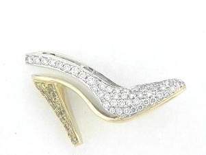 14K WHITE AND YELLOW SHOE PENDANT WITH 0.33CT YELLOW DIAMONDS AND 1.56CT WHITE DIAMONDS SET IN PAVE SETTINGS.
