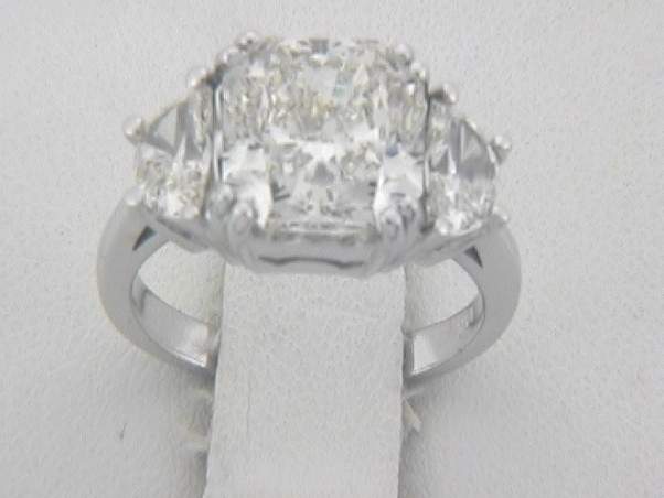 14K WHITE GOLD HAND MADE RING WITH SIDE OF TWO HALF MOON TOTAL OF 1CT AND CENTER OF 5CT RADIANT CUT DIAMOND SET IN PRONGS SETTING.