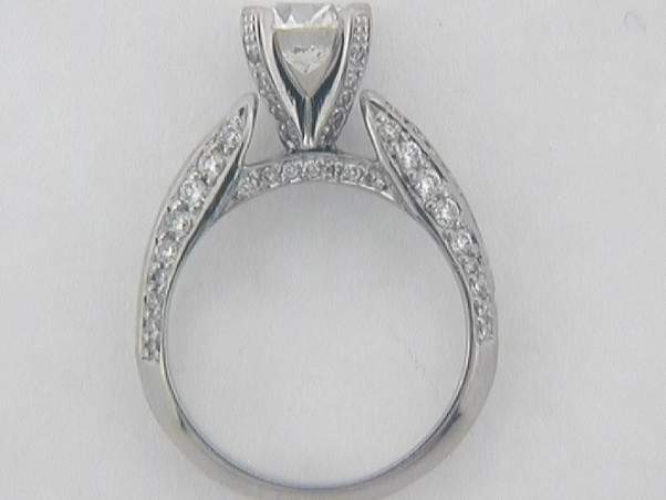 14K WHITE GOLD HAND MADE ENGAGEMENT SET WITH 1.70CT ROUND SHAPE DIAMOND SET IN PAVE AND CHANNEL SETTING, CENTER OF 1CT ROUND SHAPE DIAMOND SET IN FOUR PRONGS SETTING.