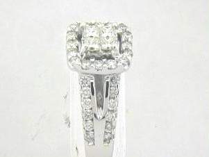 14K WHITE GOLD LADIES RING HANDMADE WITH 0.45CT PRINCESS-CUT DIAMONDS (4PCS) ON THE CENTER SET IN PRONGS AND WITH 1.04CT ROUND SHAPE DIAMONDS SET IN CHANNEL SETTING.