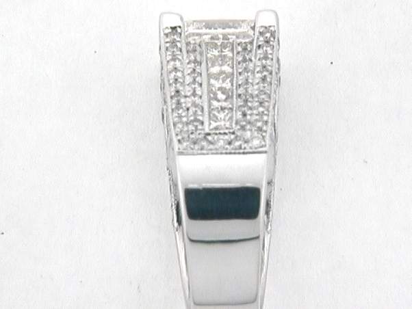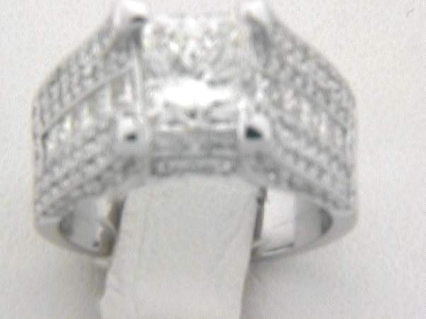 14K WHITE GOLD HAND MADE RING WITH 1.35CT ROUND SHAPE SET IN PAVE SETTING, .85CT PRINCESS CUT DIAMOND SET IN CHANNEL SETTING. CENTER OF 3.03CT PRINCESS CUT DIAMOND SET IN FOUR PRONGS SETTING TOTAL OF 5.23CT DIAMONDS.