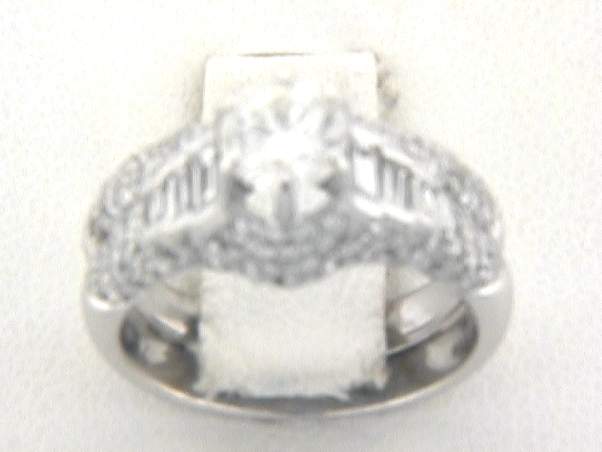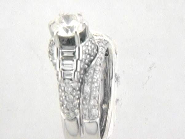 14K WHITE GOLD ENGAGEMENT SET WITH A CENTER OF 1.04CT ROUND BRILLIANT DIAMOND SET IN PRONGS AND WITH .55CT BAGUETTE DIAMONDS SET IN CHANNEL SETTING AND WITH 1.39CT ROUND DIAMONDS SET IN PAVE SETTINGS.