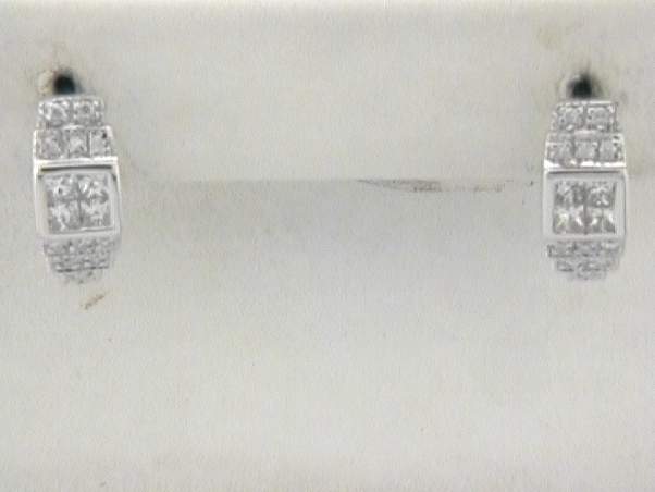 18K WHITE GOLD EARRING WITH A TOTAL OF .60CT ROUND DIAMONDS SET IN INVISIBLE SETTINGS.