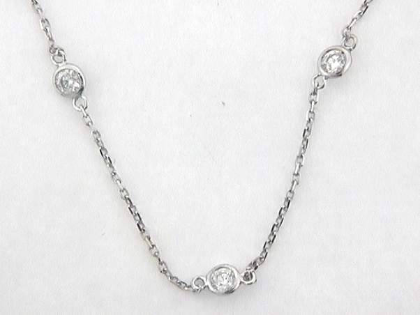 14K WHITE GOLD NECKLACE WITH 1.50CT ROUND SHAPE DIAMOND SET IN BEZEL SETTING.
