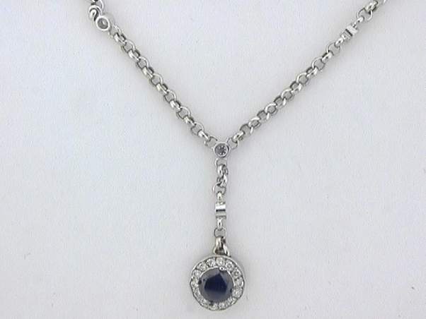 14K WHITE GOLD LADIES NECKLACE WITH A CENTER OF 1.0CT BLACK DIAMOND SET IN PRONGS AND WITH .74CT ROUND DIAMONDS SET IN PAVE & BEZEL SETTINGS.