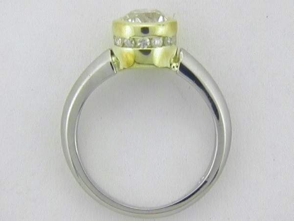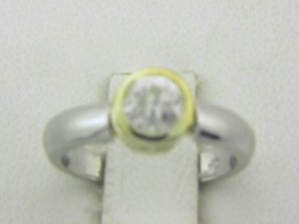 PLATINUM WHITE AND YELLOW GOLD LADIES RING WITH A CENTER OF 1.01CT ROUND DIAMOND SET IN BEZEL SETTING AND WITH .20CT ROUND DIAMONDS SET IN PAVE SETTING.