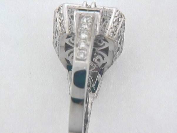 14K WHITE GOLD HAND MADE RING WITH 2CT ROUND SHAPE DIAMOND SET IN PAVE SETTING, SIDE OF .40CT BAGUETTE DIAMOND SET IN PRONGS SETTING CENTER OF ALMOST 2CT SI3,G CUSHION CUT DIAMOND SET IN FOUR PRONGS SETTING. TOTAL OF OVER 4.50CT DIAMONDS.