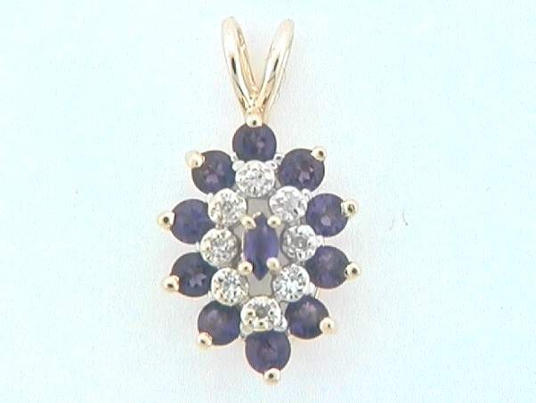 14K YELLOW GOLD PENDANT WITH .75CT AMETHYST AND ROUND DIAMONDS SET IN PRONGS SETTINGS.