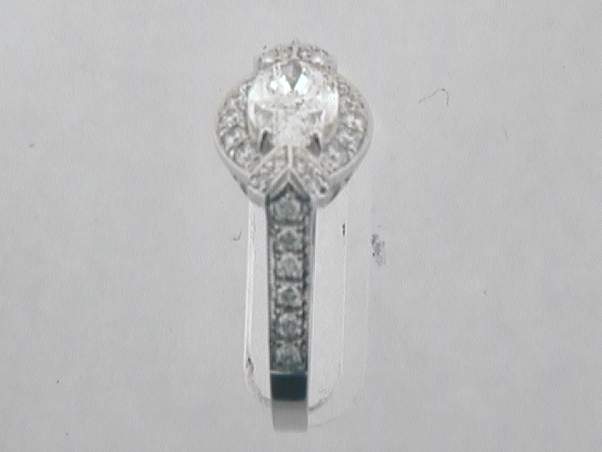 14K WHITE GOLD LADIES RING WITH CENTER OF 1.51CT OVAL DIAMOND WITH GIA REPORT#17454402 SI2 – G, MEAS:9.44X6.11X3.58MM SET IN PRONGS AND WITH .59CT ROUND SHAPE DIAMONDS SET IN PAVE SETTING.