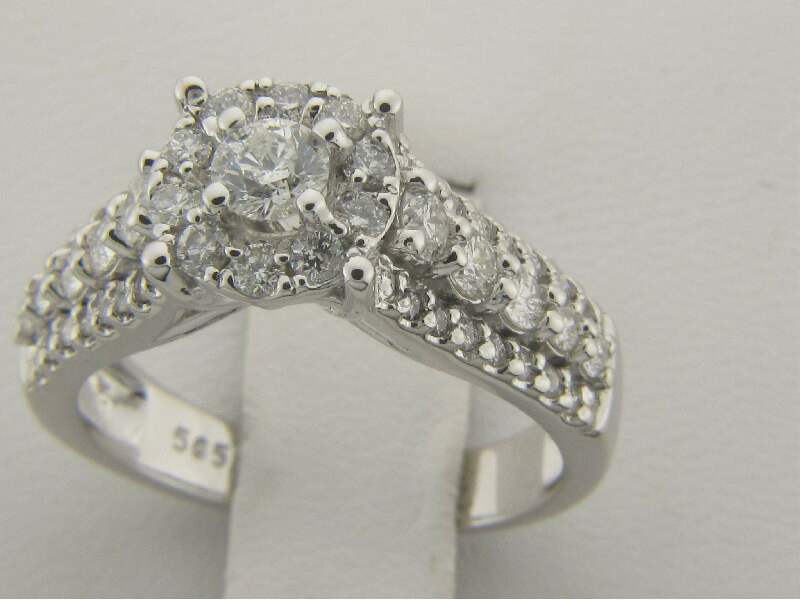 14K WHITE GOLD RING WITH 1CT ROUND SHAPE , CENTER OF .47CT ROUND SHAPE DIAMOND SET IN PRONGS SETTING.