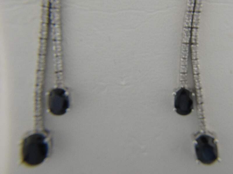 14K WHITE GOLD EARRING WITH TOTAL OF .70CT ROUND SHAPE DIAMOND, 3.57CT OVAL SHAPE SAPPHIRE SET IN FOUR PRONGS SETTING.
