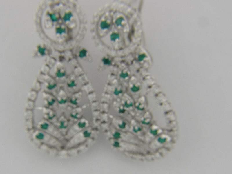 14K WHITE GOLD EARRING, WITH 2.75CT ROUND SHAPE DIAMOND, AND 1.30CT ROUND SHAPE EMERALD SET IN PRONGS SETTING.